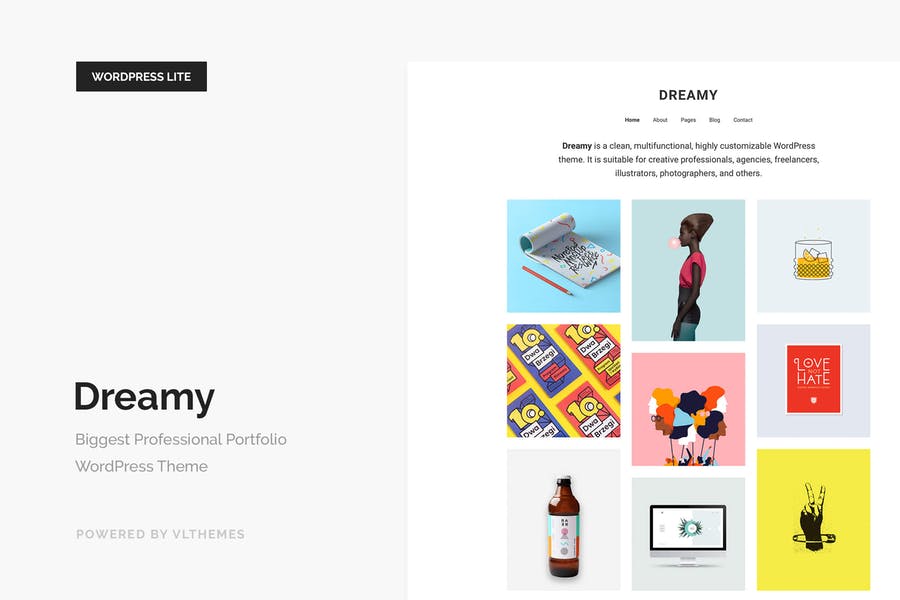 Dreamy is a clean, multifunctional, highly customizable WordPress theme. It is suitable for creative professionals, agencies, freelancers, illustrators, photographers, and others. A large number of options and add-ins will allow you to understand what a real premium template is like. Thanks to Live Customizer you will be able to change the theme on the spot, now it’s easy and convenient.