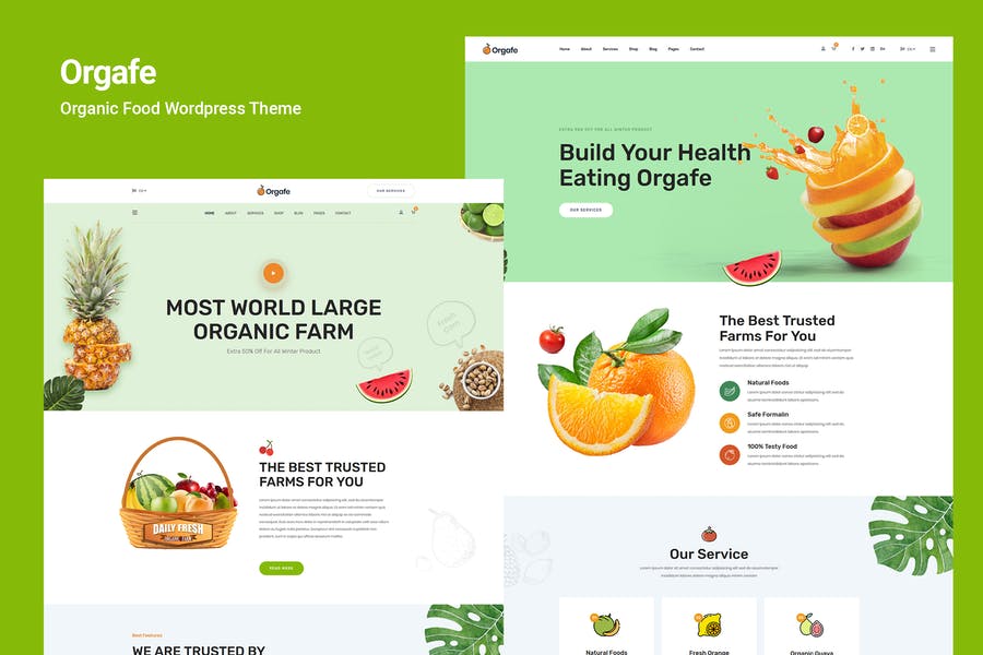 Orgafe is a powerful Organic Food WordPress Theme. You can use it for Organic Store, Organic Farming, Farm, Organic Food, Organic Food Shop, Dairy Farm, Bakery Shop and many other services. It has 100% responsive design and tested on all major browsers and devices.